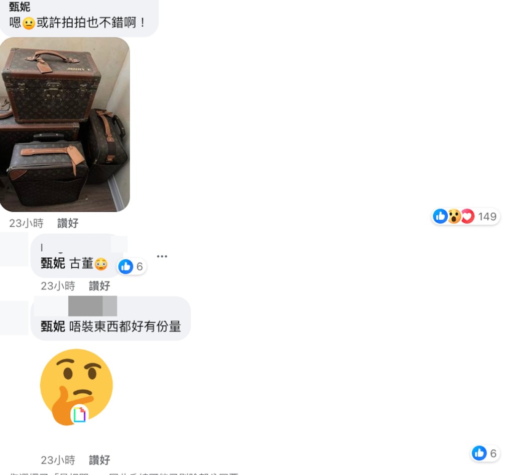 然而甄妮20日突然在社群喊著想拍賣所有珍藏品,並秀出好幾樣價值不斐的收藏,包括130公分長的山羊石雕、花形瓷器、刻有她名字的古董名牌行李箱等,讓粉絲驚訝不已,好奇她怎捨得捐出這些珍藏。