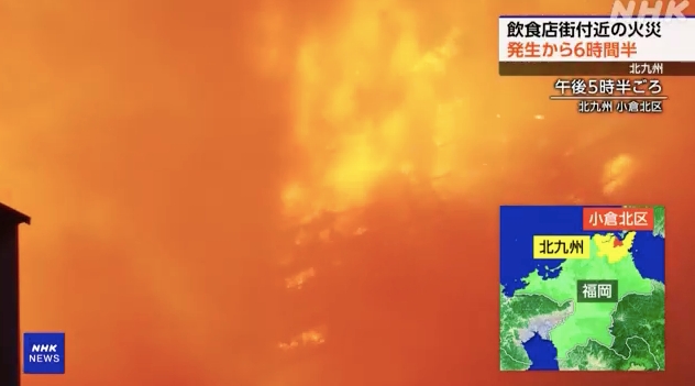 根據《NHK》報導,當地時間下午3點11分,警消獲報「魚町銀天街」傳出熊熊烈火,隨即派出20輛消防車滅火,發現起火地點在JR小倉站南方300公尺處、餐廳密集的「鳥町食堂街」,疑似是某間餐廳廚房內的油鍋起火、釀成火災。
