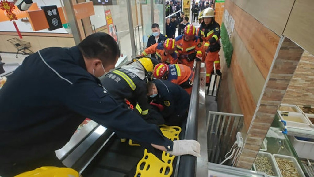 根據《香港01》報導,從監視器畫面可以看到,女子腳下的電扶梯突然「空」了一塊,她瞬間陷進去,一旁的民眾趕緊按下緊急停止鈕,並報警處理。由於電扶梯結構相當複雜,消防隊員一時半會也不知道該如何操作,後來在維修人員的協助下,使用螺絲刀將電扶梯的活動面板拆除,再用電動擴張器和液壓撐桿對女子被卡部位進行擴張。