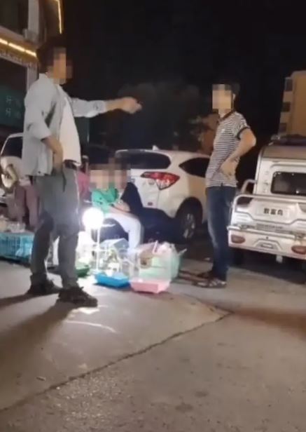 老闆連中2刀後,頭顱應聲落地,圍觀民眾目擊嚇得四散,現場爆出尖叫聲。而這時一名疑似是老闆家人的女子,原本抱著小孩在一旁旁觀,老闆身首異處後,她一邊大罵砍人的顧客,一邊手足無措查看老闆狀況。而客人行兇完只是將砍刀收回背包,留在現場用手機與人通話。