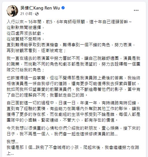 圖片來源 / 翻攝自臉書 (吳慷仁),下同