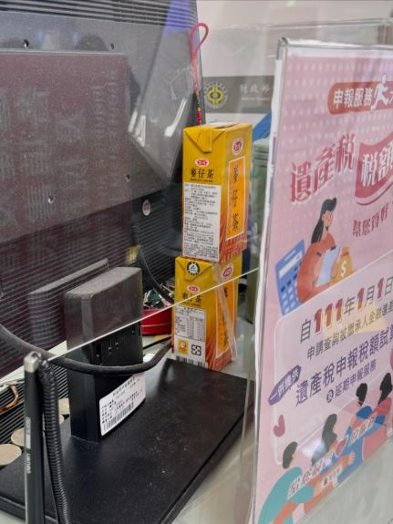 根據媒體《ETtoday新聞雲》、《CTWANT》的報導,一名網友在社群平台Threads上好奇發問,日前他前往國稅局辦事時,發現每個窗口居然都擺了一瓶沒開過的麥茶,看上去不是拿來喝的,疑惑「請問為什麼國稅局每個窗口都放一罐麥仔茶?是什麼諧音梗嗎?」