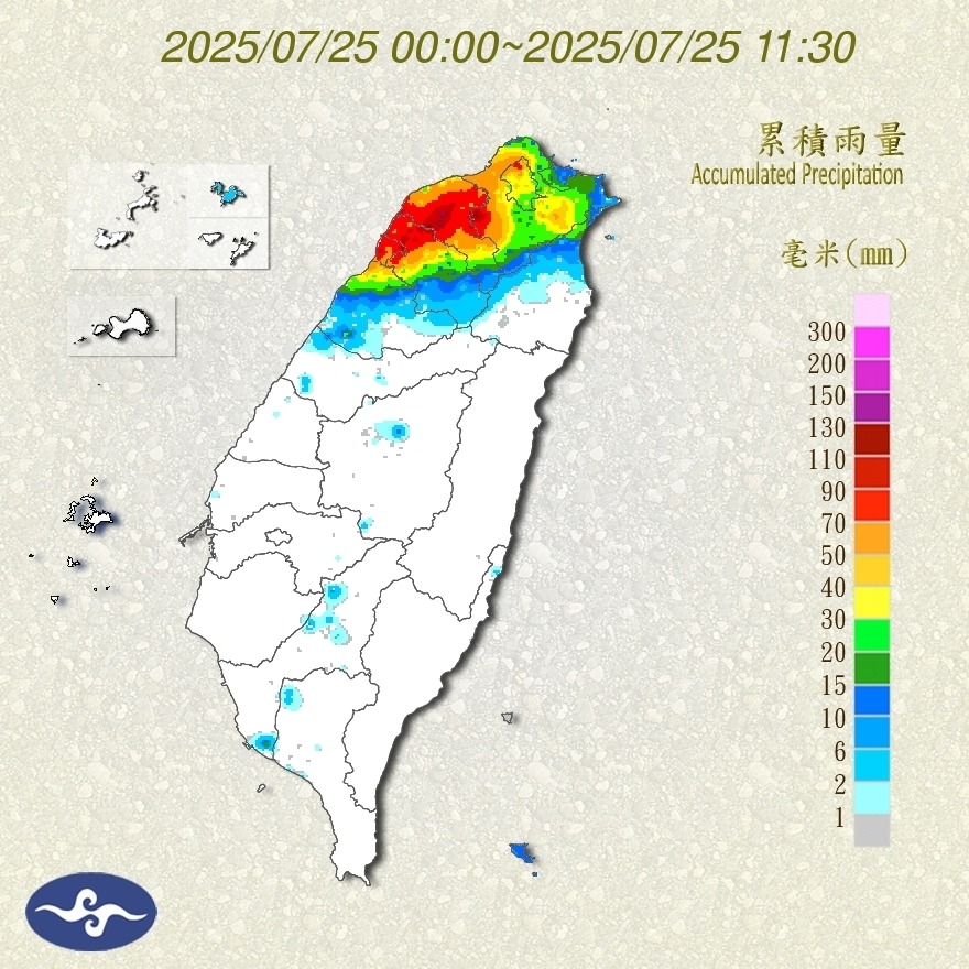 林得恩表示雖然明天 (26) 颱風逐漸遠離,「西半部地區白天仍有局部間歇性陣雨或雷雨發生機會;午後,則有局部短暫雷陣雨,山區降雨最為顯著。而東半部的花蓮 (含) 以北地區也有零星短暫陣雨或雷雨,降雨屬間歇性陣雨型態。」