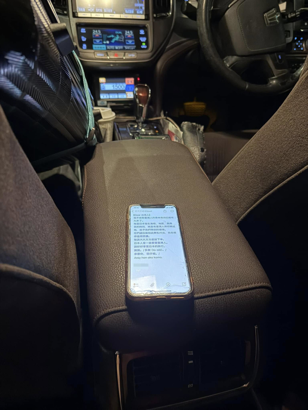 司机存了一封繁体中文信在手机记事本,开头写着「Dear 台湾人」,他表示9年来都不收台湾人的车资以表达感恩,「每当日本发生海啸、地震,最痛苦的时刻,总是有台湾人热切亲近地,给予我们特别的感情。您们诸位能如此无私付出,我也觉得值得夸赞。敬请大大方方直接下车。」信末甚至还用心以中文、台语、客家话和阿美族语道谢。