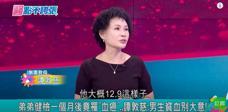 57歲的資深藝人沈玉琳確診急性白血病,也就是俗稱的血癌,除了準備接受化療,另一方面也要評估做骨髓移植,令外界相當憂心。事實上,無毒教母譚敦慈3個月前,就在節目《醫點不誇張》節目中分享,男生貧血真的很注意,也以弟弟當作案例。