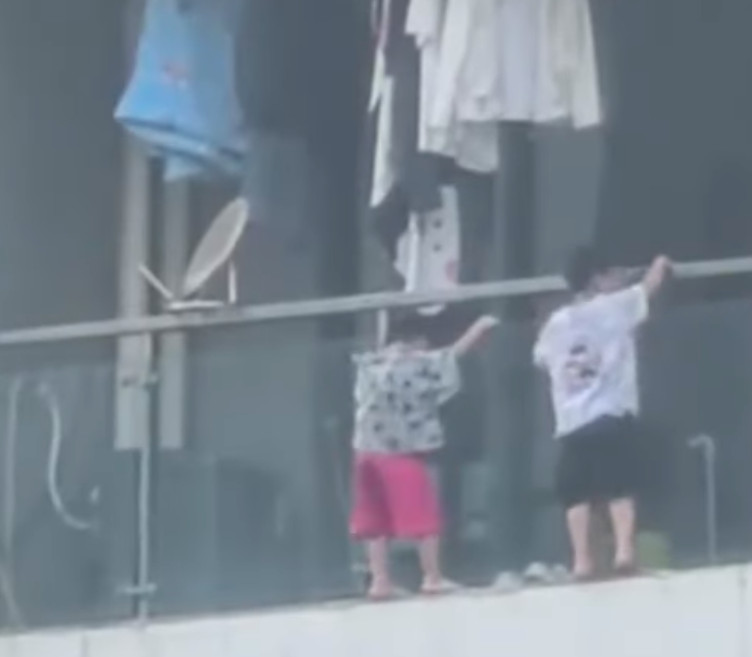 根據《極目新聞》報導,事發在8月7日,地點為貴州省貴陽市北京四路一棟公寓的13樓,2名幼童趁著父母不注意,溜到陽台外園,其中一人站在牆壁邊緣,手扶著玻璃,另一名年紀稍大的男童更是離譜,用手抓著玻璃邊緣,雙腳懸空。