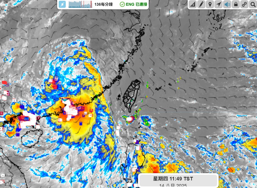 至於明、後天 (15至16日) ,吳聖宇提到,太平洋高壓增強,高壓中心可能向西推進至台灣以北,台灣附近為明顯且較強的偏東風環境,迎風面東半部有局部短暫陣雨,西半部午後仍有局部短暫熱對流雷雨,但降雨會較為減少,降雨範圍以山區為主,雨勢也較為減小,西半部局部單點持續會有超過36度以上高溫出現的可能性。