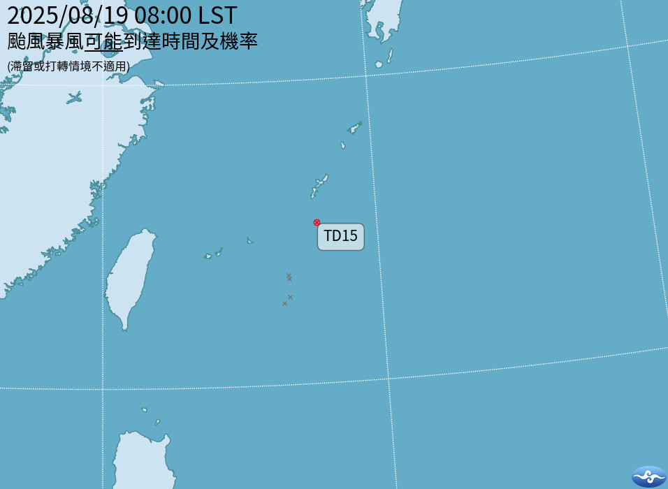 位於琉球南方海面的熱帶性低壓TD15,原本預計最快會在今 (19) 日發展成颱,然而因為環境條件變差,TD15增強為颱風的機率大減。不過氣象署仍提醒,由於水氣稍多,周三 (20) 前中南部仍要慎防出現強降雨、雷擊、強風等劇烈天氣。