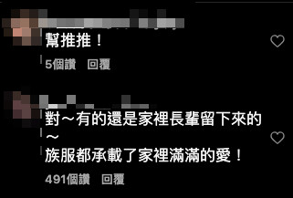 貼文曝光後,留言區湧入許多留言,大家紛紛指出「那是愛~是恩典」、「真的,今天清到屋主的族服,馬上通知,拿袋子裝起來保留」、「對~有的還是家裡長輩留下來的~族服都承載了家裡滿滿的愛」、「族服,那是難以言喻的珍貴」、「願每一件族服都能被找回,這不只是一個族的傳承,更是一種生命的延續」、「不能丟!看到請幫忙留」。