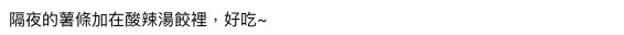 一名網友在臉書「爆廢公社二館」發文表示,自己把隔夜的薯條加在酸辣湯餃裡,味道非常好。