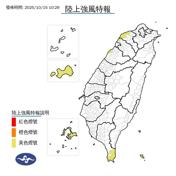 今天 (15) 仍是多雲到晴的熱天,不過中午過後嘉義以南地區及各地山區有局部短暫雷陣雨。氣象署提醒,因風力增強,桃竹苗沿海、恆春半島、台東沿海及蘭嶼、綠島、澎湖、馬祖局部地區有平均風6級以上或陣風8級以上發生的機率。