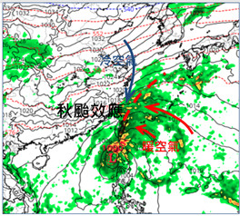 吳德榮分析最新歐洲模式 (ECMWF) 模擬,週日 (19) 晚上風神預估通過呂宋島北端進入南海,此時風神外圍環流的暖空氣,將與東北季風的冷空氣輻合,產生「共伴 (秋颱) 效應」,北、東明顯降雨並有「大量降雨」的潛勢,應注意防範。