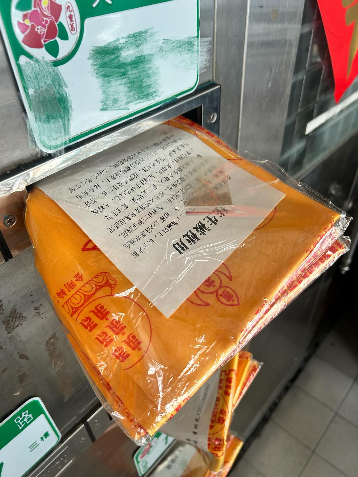 只见连3栋公寓、近30户住家信箱,全被塞进「往生被」,且每一包都还附有「使用说明书」,上头写着「临终时盖到胸部」。