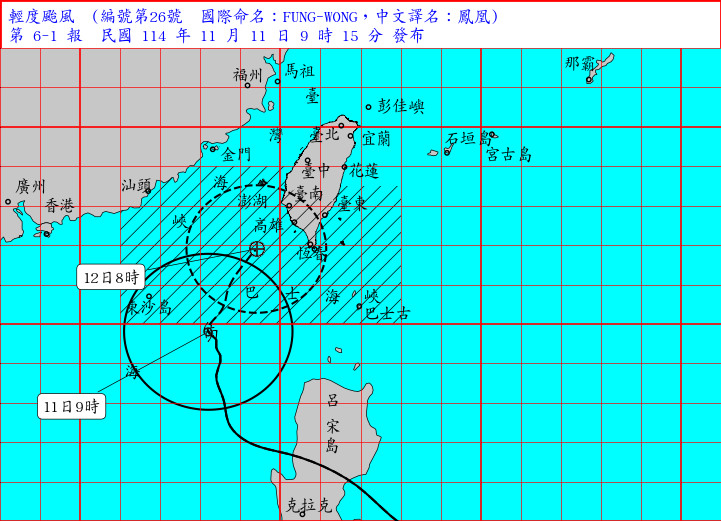 根據《ETtoday新聞雲》、《TVBS新聞網》報導,中央氣象署指出,目前輕颱鳳凰中心位於鵝鑾鼻西南方海面,暴風圈正逐漸進入台灣南方近海,對台南、高雄、屏東、臺東、恆春半島將構成威脅。雖然鳳凰過去3小時強度稍減弱且暴風圈略為縮小,但因颱風外圍環流與東北季風交互影響,各地雨勢有更加明顯的趨勢。