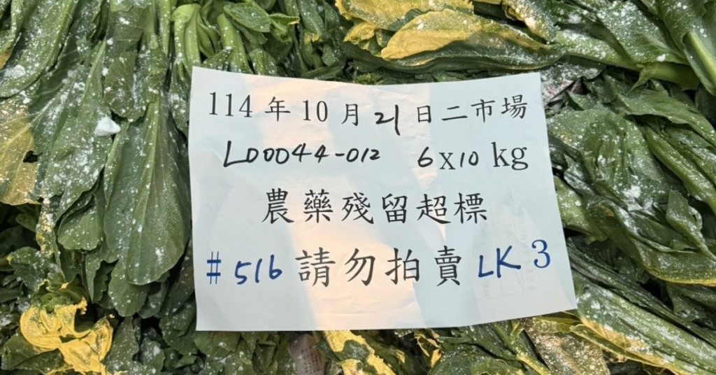 根据媒体《东森新闻》、《风传媒》的报导,台北农产公司114年10月监测批发市场蔬果农产品农药残留,抽验1150件蔬果产品中,有107件不符合规定,主要不合格品项为辣椒、芥蓝菜及菜豆。