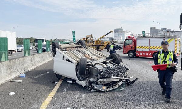 國道一號北向桃園中壢路段今 (26) 日發生5車連環碰撞事故,一輛大貨車與4輛自小客車發生碰撞,其中2輛轎車翻覆或側翻,造成6人受傷送醫,所幸所有傷者均為擦挫傷,沒有生命危險。至於事故原因及肇事責任,仍待警方進一步調查釐清。