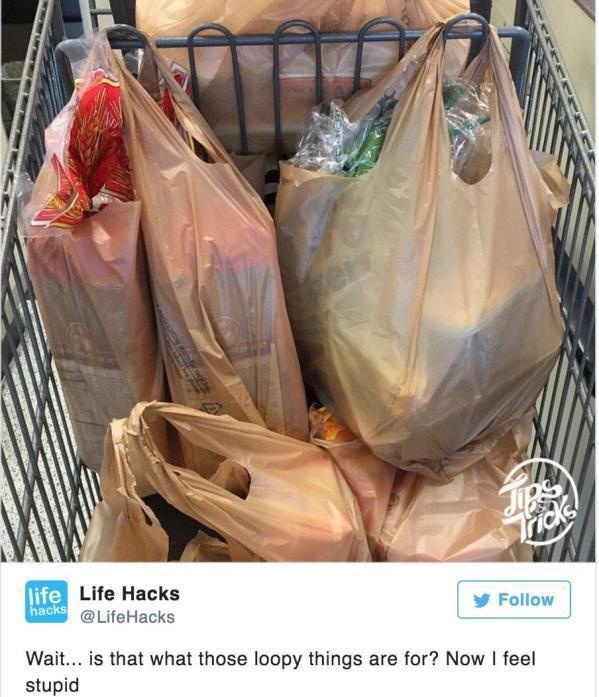 結完帳後,大包小包的可能讓你有點難以負荷,尤其如果你有買雞蛋或是牛奶,容易被壓壞的東西的話,真的會很怕直接把購物袋放在推車裡會壓扁。