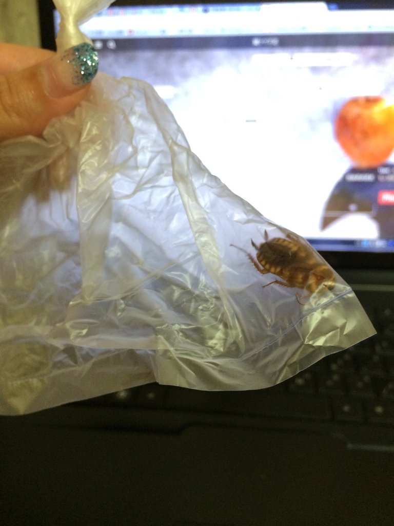 超市員工在鮮魚區的地板上發現3隻活生生的蟑螂,一旁還有透明塑膠袋。他們認為是有人刻意放蟑螂進來,調閱監視器發現一名女子手拿塑膠袋走進超市,塑膠袋裡面約有10幾隻蟑螂。