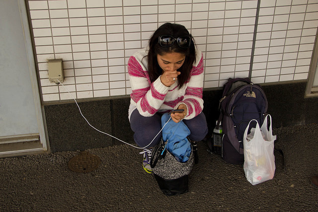 不然你就會像這位女生一樣,整天都只能黏著插座了。
