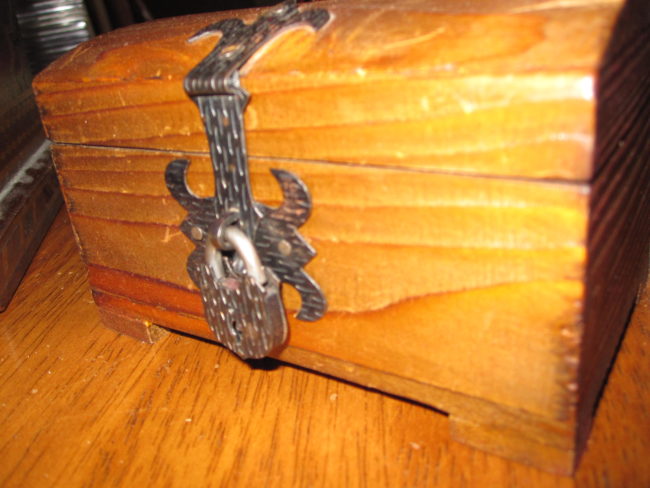 這個精緻的木盒就放在塑膠袋上,真好奇裡面到底放了什麼東西呢!
