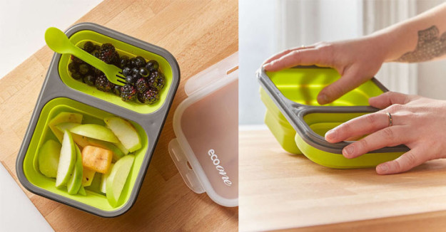 8. 这个折叠式便当盒,吃完清洗干净让你超方便收纳,完全不占包包空间!