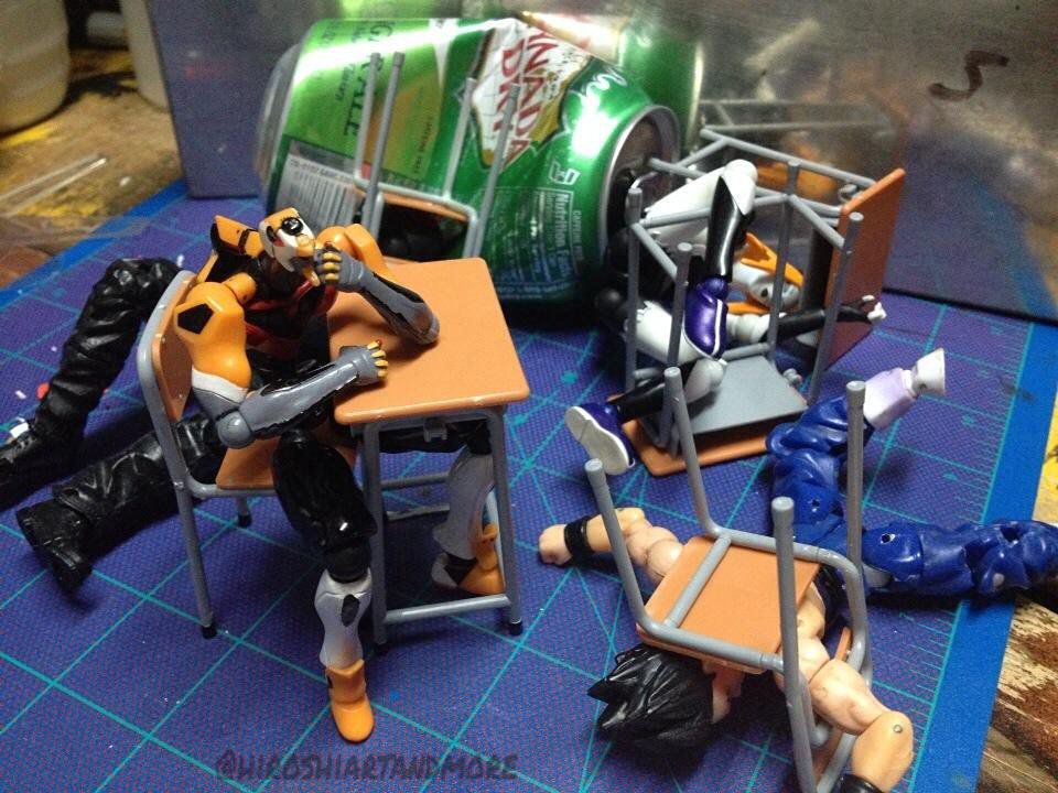 「超適合給玩具或公仔。非常棒的學校桌椅配件,給15公分的模型公仔拿來拍照。我特別喜歡椅子可以疊在一起,跟真的一樣。」