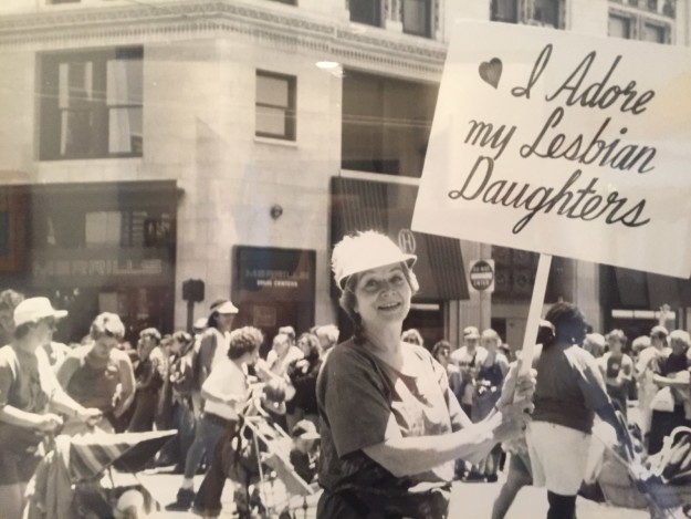 結果在1997年的華盛頓日報有篇關於同志驕傲大遊行的文章,提到了她的名字:73歲的弗朗西斯戈爾丁( Frances Goldin )板子上寫著『我愛我的蕾絲邊女兒們,請讓她們平安。』,並說到這個社會允許大家歧視同性戀者,她的兩位女兒一個在奧勒岡州的波特蘭市,另一個則在舊金山一同遊行。戈爾丁說在遊行中,有許多人都直接奉上電話號碼,希望可以當她的女兒。戈爾丁表示,她會打給這些人,並說「人與人之間的差異可以豐富我們。」