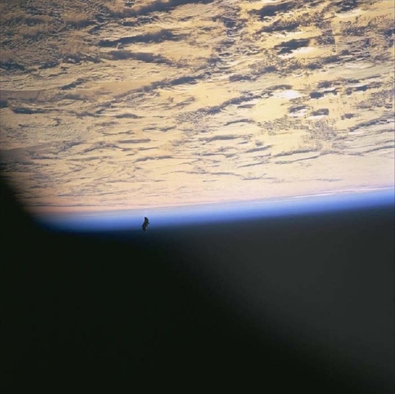 15. 在1998年,当美国太空人执行一项任务前往国际太空站时,拍下这张照片。照片中有个东西正在环绕地球轨道中,科学家称它为「黑骑士卫星」。