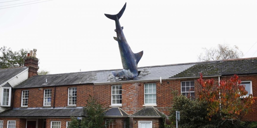 19. 这只鲨鱼其实是有人刻意摆在这儿的,牛津市的这栋房子在2013年10月把这个拥有25英尺长( 约7.6公尺 )的鲨鱼模型雕像装在屋顶上,纪念41周年的长崎核弹爆炸。