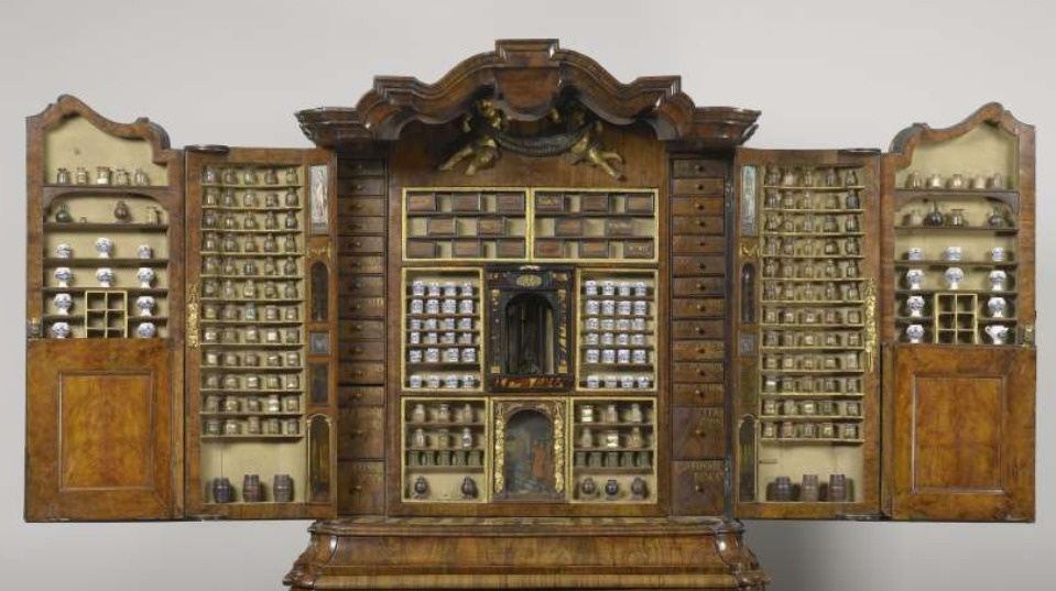 8. 这其实是来自1730年荷兰台夫特的一个微型药房陈列柜,里面应有尽有,不过实际尺寸不得而知。