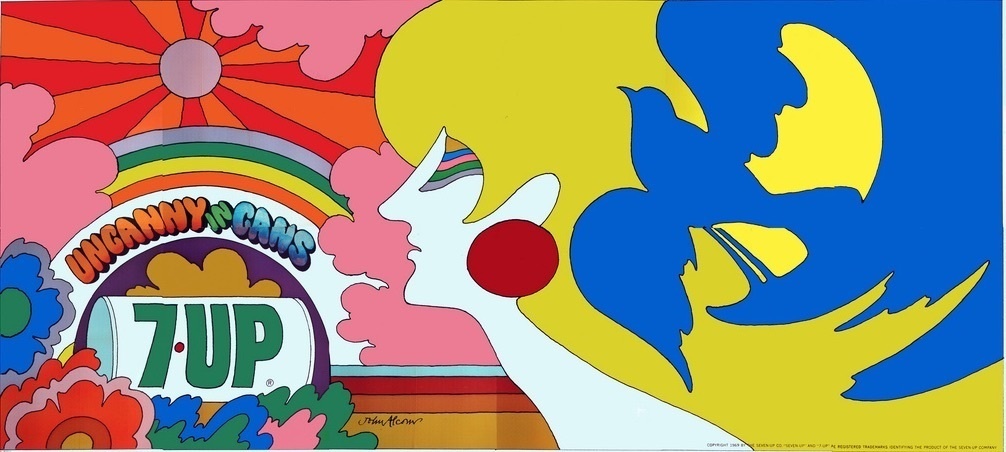 7. 60年代象征著爱与和平以及大量的毒品,而这张图是七喜公司特别为LSD迷幻药使用者所设计的广告活动。