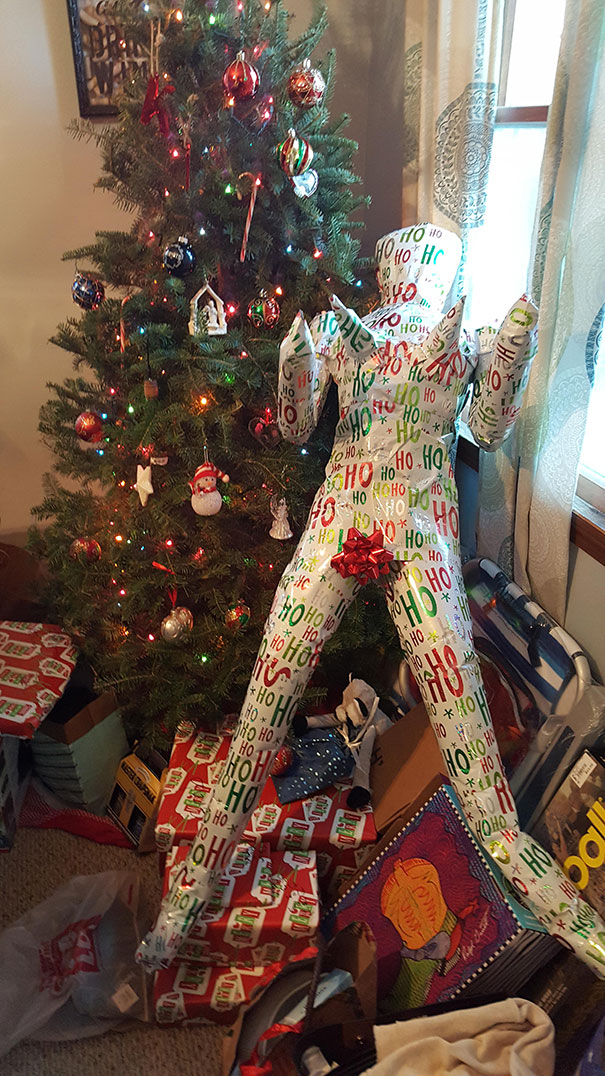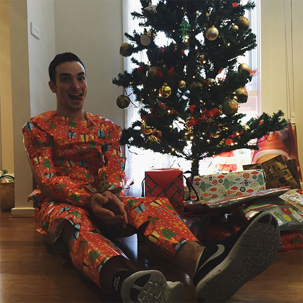 15. 我朋友的姊姊在圣诞节礼物的包装纸上加了一点巧思。