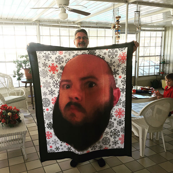 18. 我送我爸一个印有我脸的毯子当圣诞节礼物,因为我一直都很想送别人这个东西。