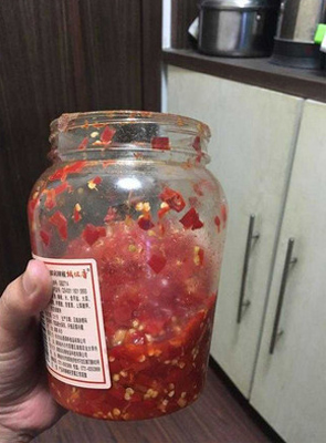 難怪臉會腫成這個樣子,看著剩下的辣椒醬他也是哭笑不得。