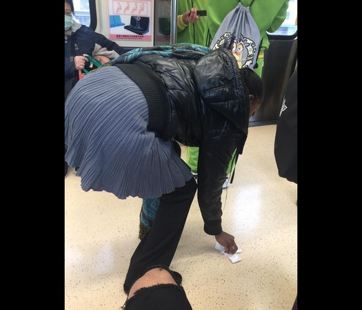 未料,坐在對面的一名外國女生見狀,竟直接拿出衛生紙,動作俐落地彎下腰擦乾淨,還把垃圾放入自己包包。熱心舉動讓原PO十分感動。