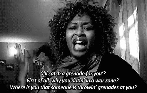「『我会为你接住手榴弹?』首先,你干嘛在战区约会?你到底在哪啊,有人会对你丢手榴弹?」