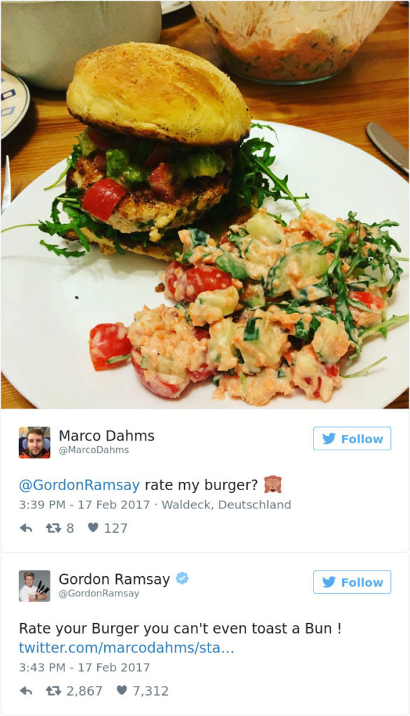 《地狱厨房》拥有15颗米其林之星的世界第一名厨高登 (Gordon Ramsay) 火爆风格深受许多观众喜爱,他的厨艺跟毒舌程度可说是成正比,且开口闭口总是离不开「fxxk」,看他在节目上把厨师的料理谯到一文不值,除了为他们感到不舍,却也有种莫名爽感 (?)。而他的的毒舌程度到了网路上更是「战神」等级!最近有不少国外网友纷纷在推特分享自己的料理请高登评论,快来看看他怎么说!