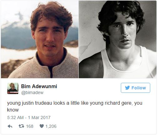 9. 也有網友指出,年輕時的賈斯汀杜魯多和男神李察吉爾有幾分相似!
