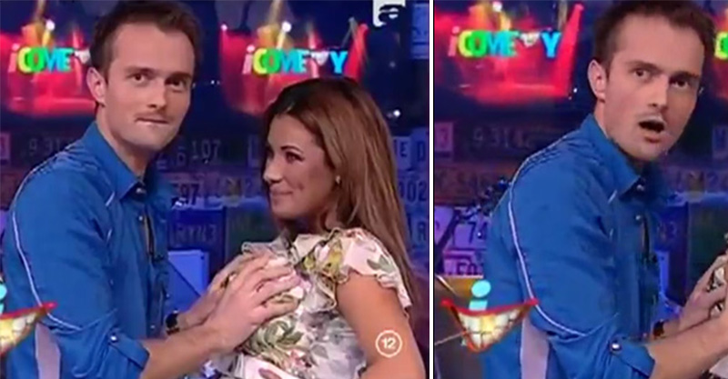 這位來自南美國家的主播竟然在電視上直接使出「魔掌」抓女模的胸部?!當時在討論隆乳手術的時候,其中一名主播從桌下拉起了一名超正的模特兒,另一名主播就站過去摸摸看真胸跟假胸的差別,但…好像有點檢查的太仔細了吧?