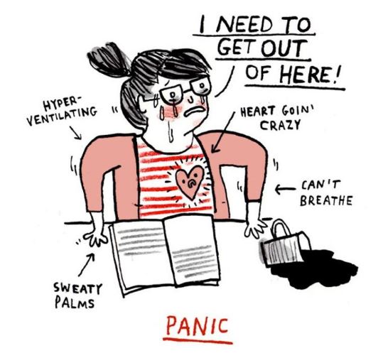 心開始跳得很快、不能呼吸、冒手汗、過度換氣。