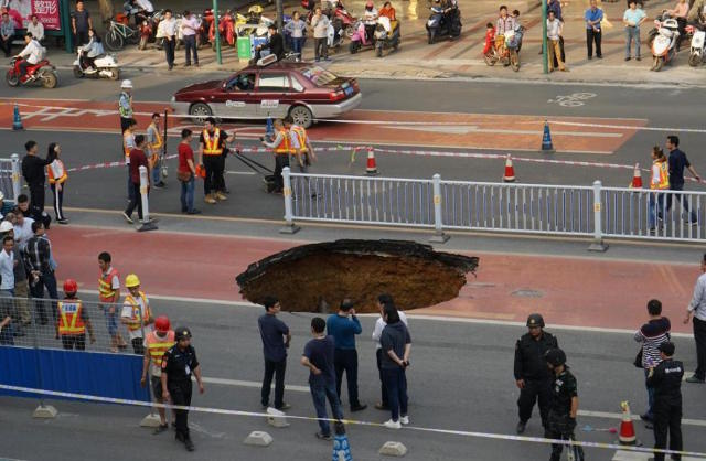 之前在日本的道路上出現了神祕沉洞,差點把車子都吞沒,這次要看到的是在中國南寧,一台巴士在24日被拍到突然間「彈跳」了一下,還在想說到底是為什麼的時候,地上出現了一個大洞!還好當時司機加速逃脫,在公車上的21名乘客也都沒有受傷,從畫面中可以看到他們真的被震到跳了起來!