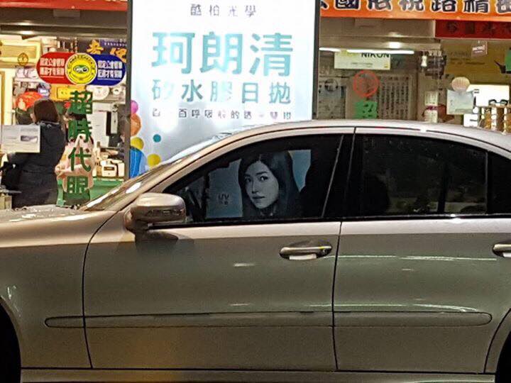 表情还有点凶呢,但仔细一看发现原来只是后面的广告看板,刚好透过车窗被拍到造成错觉。网友:「我快笑死了拉~」、「哈角度也太刚好了!」、「怎么感觉有点恐怖」、「吓一跳…有点凉凉的感觉」、「神借位阿」等等。