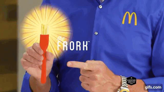 麦当劳近日推出了一个非常奇妙的「餐具」叫做「薯条叉子」!根据他们最新的电视购物广告,他们推出了3种新的汉堡,但吃汉堡的时候里面的酱汁跟料可能都会掉出来,那怎么办?!所以他们拍了这个广告,来推销这个最新的产品! (其实只是一个可以装薯条的叉子型容器) 。