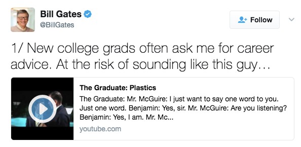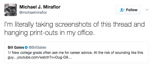 16.「這是比爾蓋茲給大學畢業生的職場忠告,這些傑出的貼文對我們全部人來說也增加了一個充滿希望的訊息。」