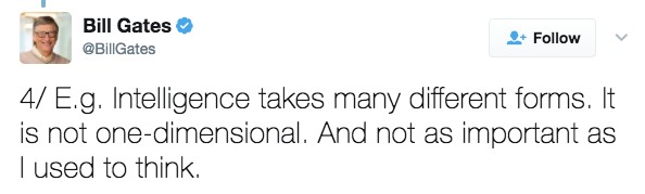 4.「例如,聰明有很多種不一樣的形式,它並不只是單維的,也不像我以前認為的這麼重要。」