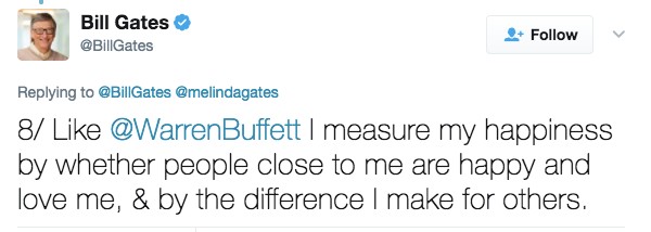 8.「就像華倫·巴菲特 (Warren Buffett) 一樣,我的快樂來自於我身邊的人是否開心或愛我,以及我為他們做了些什麼。」