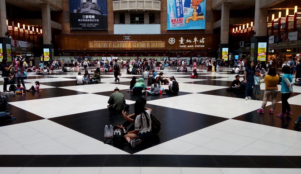 台北車站很大,也是其中最忙碌的火車站,不過就在端午節當天,有記者拍到在台北車站的驚奇景象,根據《台灣英文新聞》報導,端午節當天,旅客好像都不敢坐在白色的地板上,全部擠在黑色的地方,遠看非常壯觀。報導表示這是因為習俗,如果坐在白色的上面會帶來不好的運,所以也沒人敢嘗試。