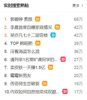 「郭碧婷 素颜」还在微博上的搜寻狠夺第一!