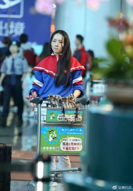 这是在桃园机场拍到没有化上任何妆,身穿蓝红白色上衣配白裤的打扮!照片一出可是直接让网友产生热议!