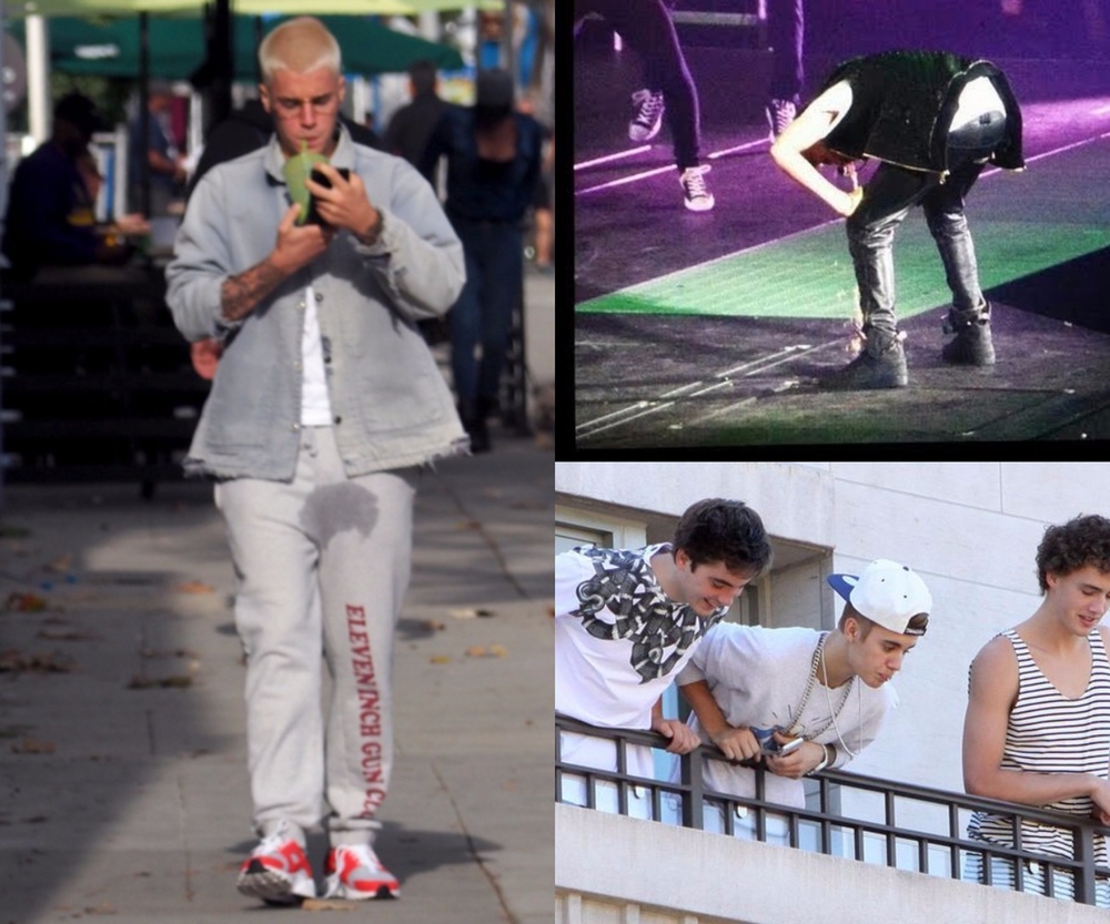 今年2月小贾斯汀在西好莱坞步行时同样被拍到裤子湿了一片,对此小贾开玩笑表示「尿裤子才酷」。2012年的巡回演唱会期间他喝酒喝到多次直接在台上呕吐,当然还有大家应该都记得的,从阳台朝露人吐口水。